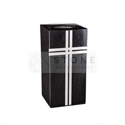 Wazon granitowy w kolorze czerni o wymiarze: wysokość od 28-30cm, średnica 15cm, waga wazonu 8kg. Wykonany z granitu Szwed. Każdy wazon posiada wkład plastikowy. Wazon dostępny w różnych kolorach. Idealny element dekoracji do każdego nagrobka.