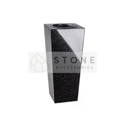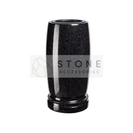 Wazon granitowy w kolorze czerni o wymiarze: wysokość od 28-30cm, średnica 15cm, waga wazonu 8kg. Wykonany z granitu Szwed. Każdy wazon posiada wkład plastikowy. Wazon dostępny w różnych kolorach. Idealny element dekoracji do każdego nagrobka.